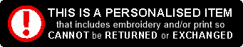 Please Note: All orders will take approximately 20-25 working days. All orders are subject to stock availability. An intention to return a product must be expressed in writing no later than 14 days of receiving the goods. Customised items (including any embroidery and/or vinyl printing) cannot be returned unless faulty
