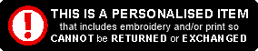Please Note: All orders will take approximately 20-25 working days. All orders are subject to stock availability. An intention to return a product must be expressed in writing no later than 14 days of receiving the goods. Customised items (including any embroidery and/or vinyl printing) cannot be returned unless faulty